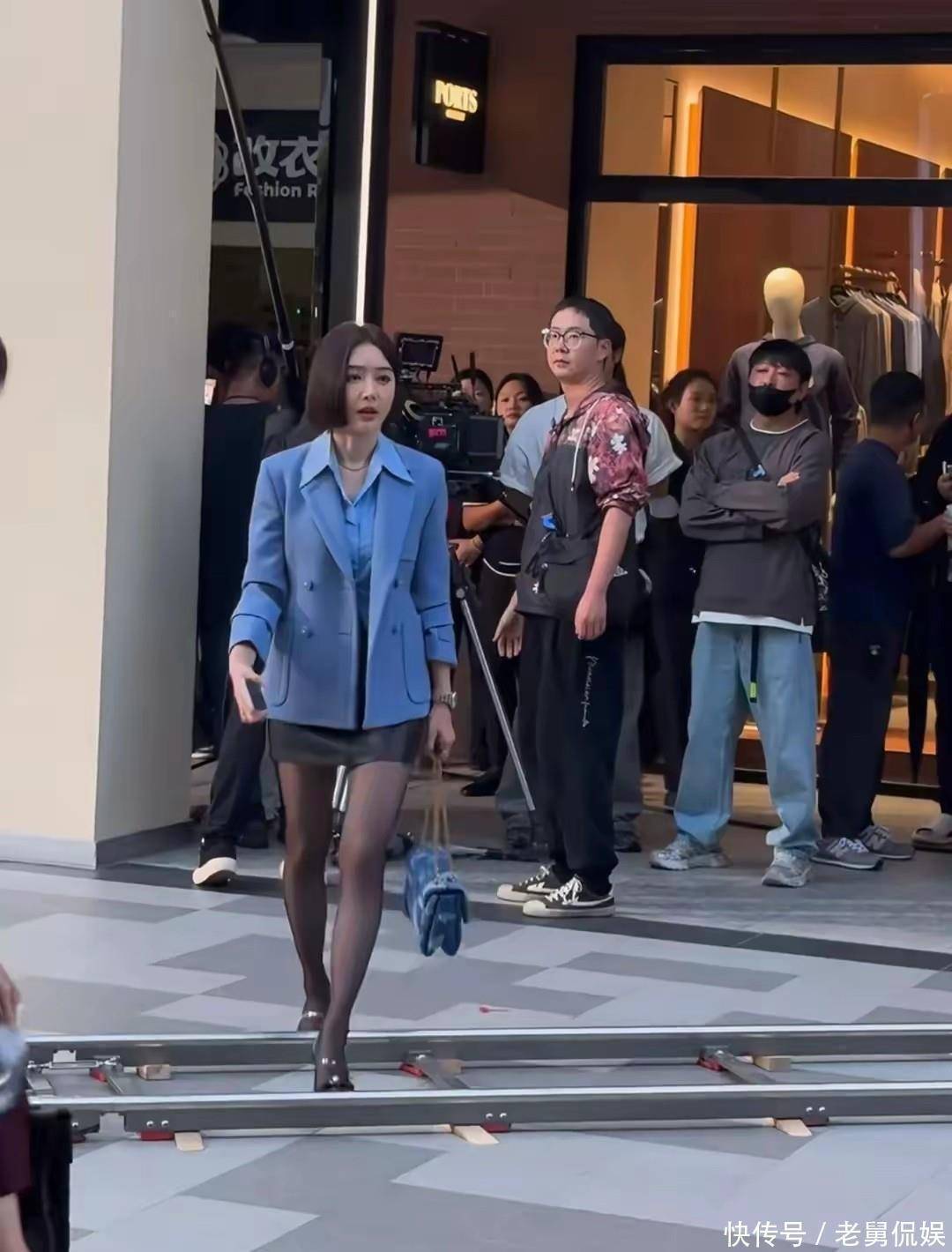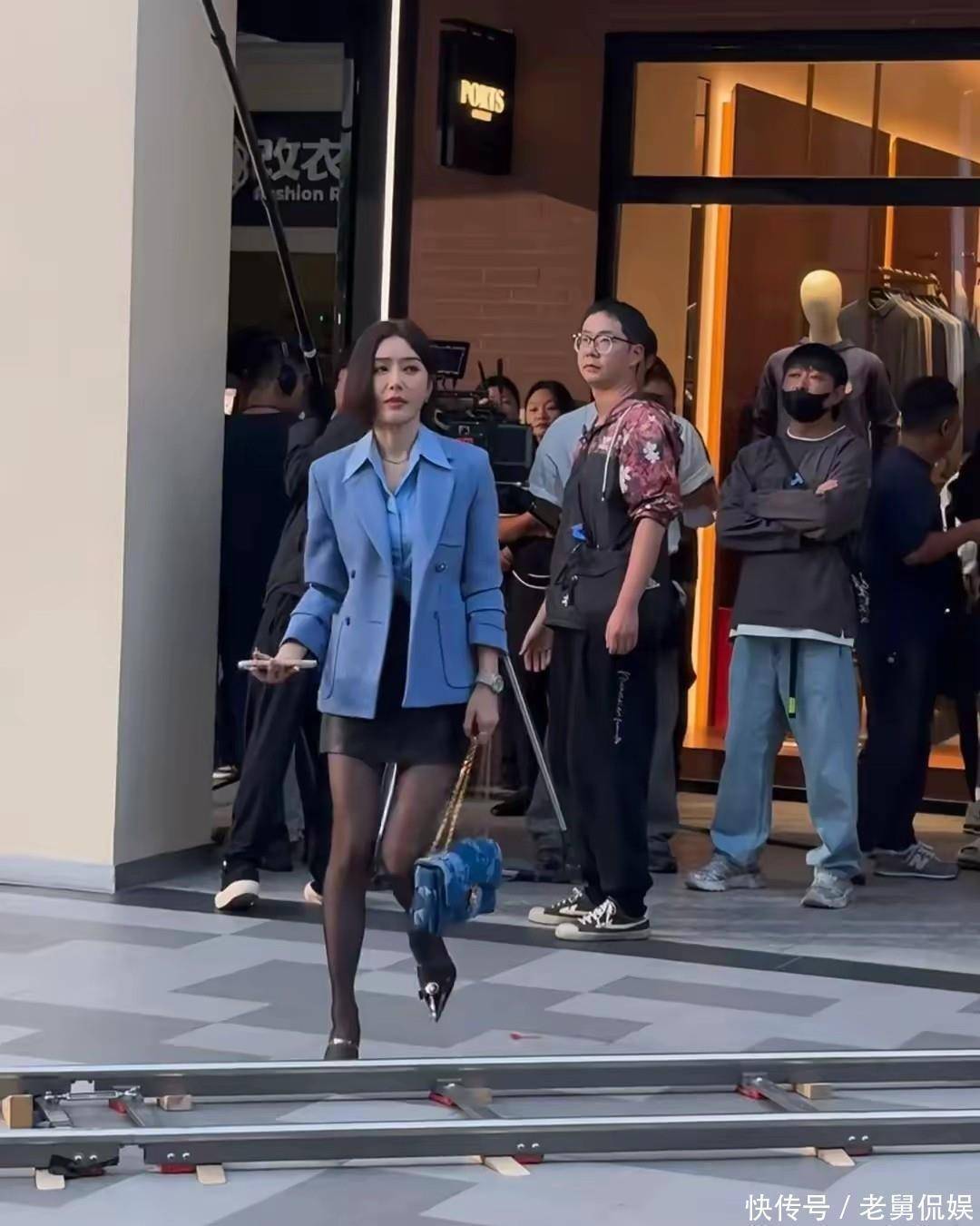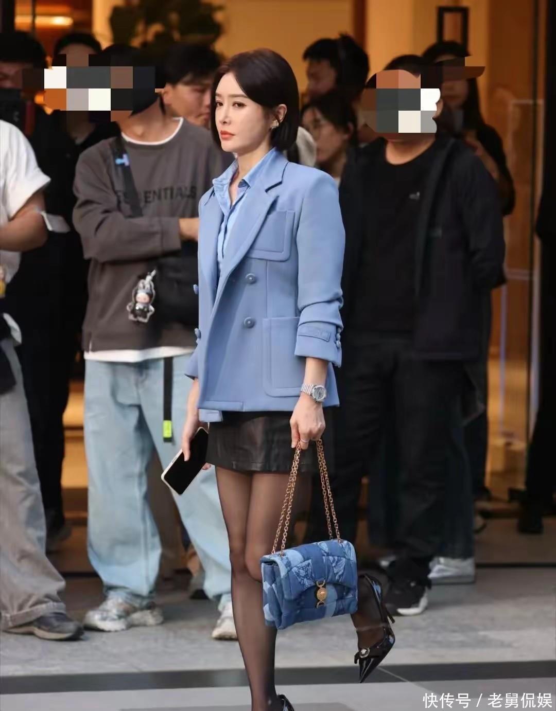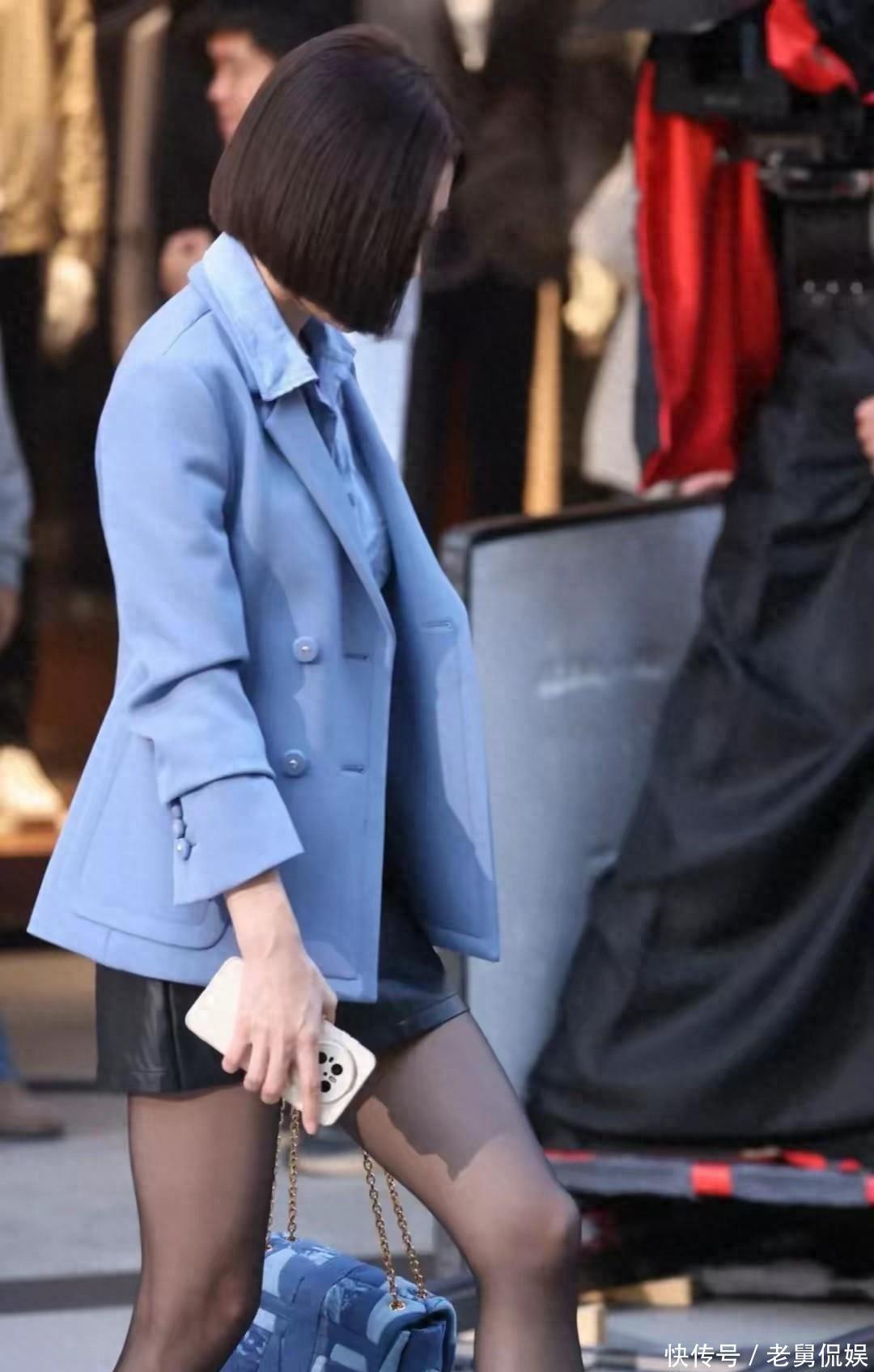当天,秦岚身穿一件蓝色外套,搭配经典黑色丝袜,整体造型干练又不失女人味。她长发披肩,妆容淡雅,面对路人的拍照请求时始终面带微笑,亲和力十足。然而最引人注目的,是她脚上那双被透明胶带缠绕着的高跟鞋——鞋底与鞋面连接处可见清晰的胶带痕迹,但秦岚行走间依然从容自若,仿佛穿着限量款新品。